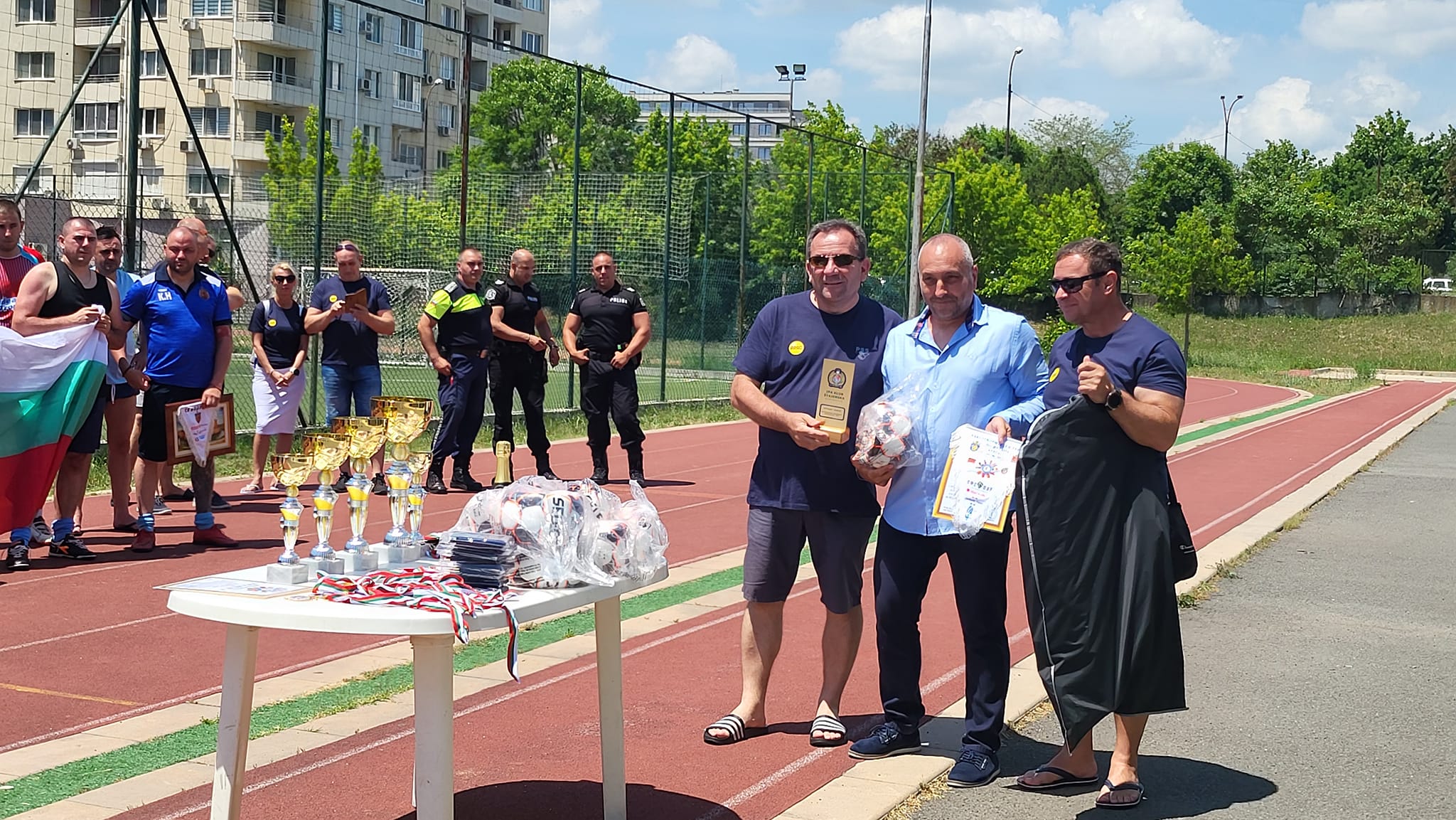 Naslednji dan smo se udeležili 13. nogometnega turnirja, kjer smo donirali sredstva za otroke poškodovanih in preminulih policistov v Burgasu. Po koncu turnirja in razglasitvi zmagovalcev, smo organizatorju izročili darilo IPA Štajerske, g. Pavlinu Kovačevu, ki je vse skupaj vodil in je strasten zbiratelj policijskih insignij pa smo izročili slovensko uniformo.